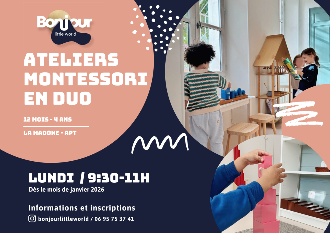 Nos ateliers Montessori pour jeunes enfants ont lieu chaque lundi matin de 9h30 à 11h.
